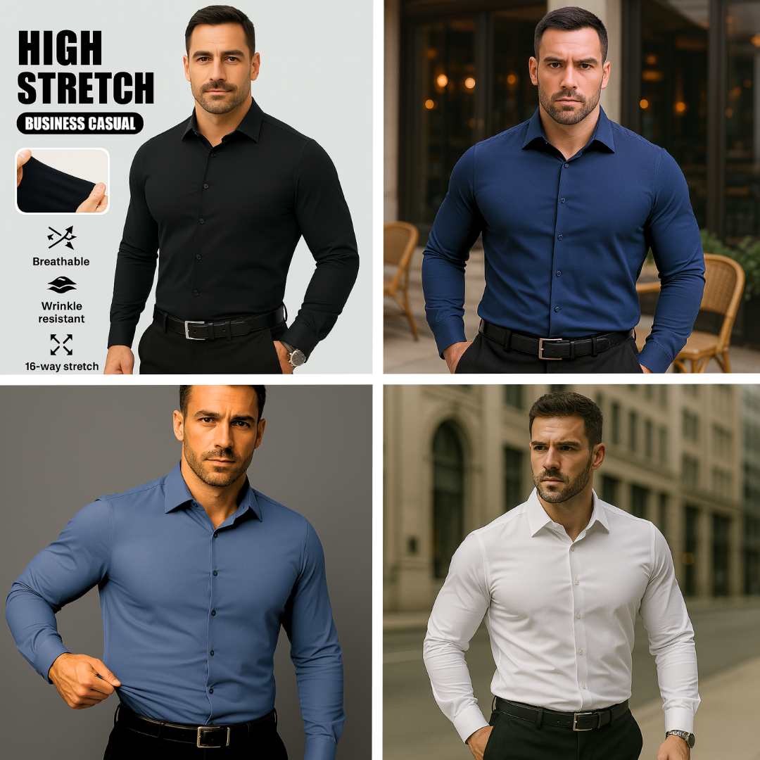 The Max Flex Dress Shirt is engineered for the man who leads with quiet confidence. Designed with 16-way stretch and a sharp tailored silhouette, it delivers boardroom polish with all-day performance.